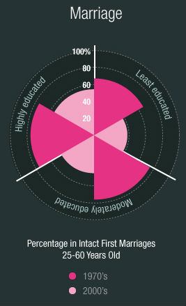 According to Elaina Rose, an economist at the University of Washington, "In 1980, a woman with three years of graduate school was 13 percent less likely to be married than a woman with only a high-school diploma. By 2000, that gap shrank to less than 5 percent."